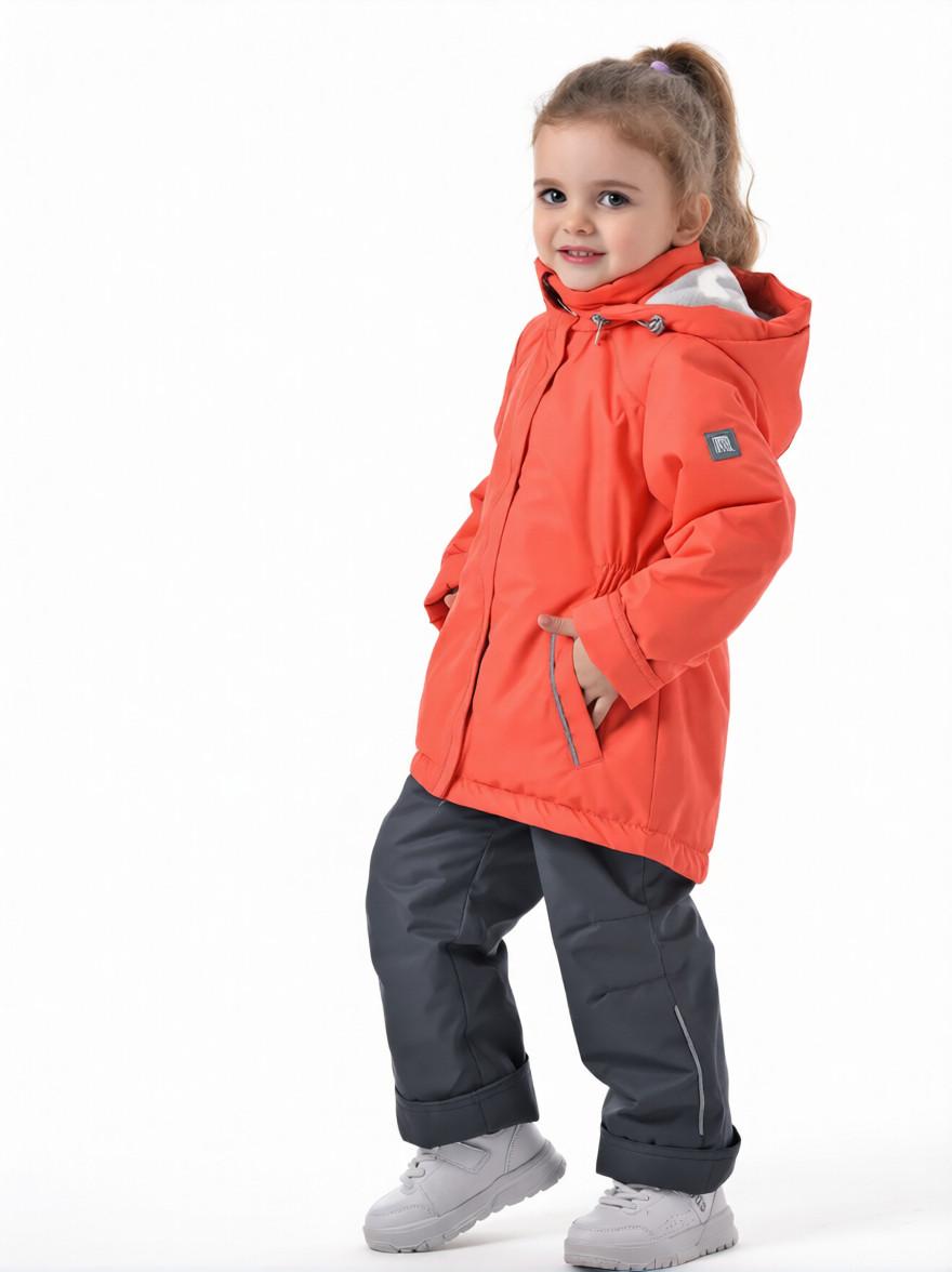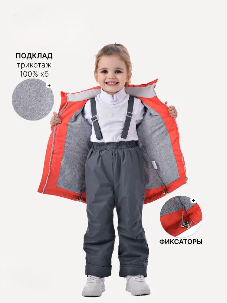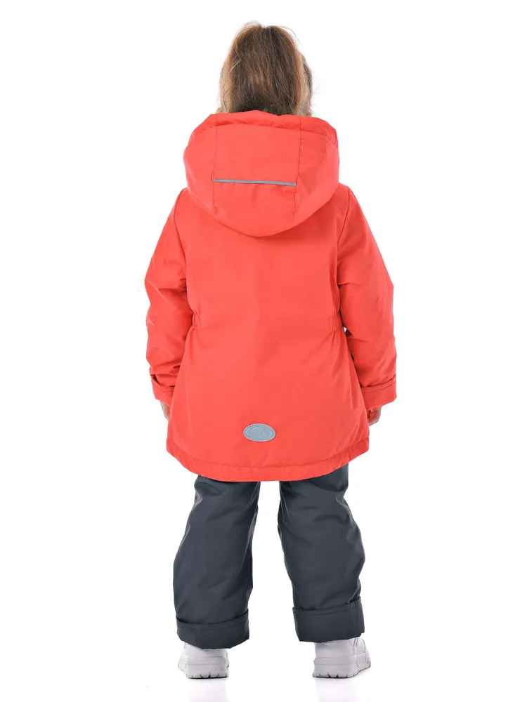 Утепленный комплект выполнен из водоотталкивающей мембранной ткани с высокотехнологичным покрытием 3000 мм/3000г/м/24ч, что обеспечивает защиту от непогоды. Гипоаллергенный утеплитель «Теплофил» (100% пэ: куртка – 120гр/м, брюки – 100гр/м) и подкладка из трикотажа – 100% хб создает комфортную теплоизоляцию. Застежка – молния куртки закрыта ветрозащитной планкой. Модель имеет резинку с фиксаторами на съемном капюшоне, а также на рукавах трикотажные манжеты, которые фиксируют тепло и защищают от холодного воздуха. Два прорезных кармана добавляют функциональности. Ширина куртки по низу регулируется резинкой с фиксаторами. Штаны костюма имеют регулируемые бретели. В поясе брюк для более плотного прилегания вставлена резинка. В брюках предусмотрены напульсники, которые помогут избежать задирания и защитят от продувания. Для комфортного и легкого одевания подкладка брюк выполнена из прочного капрона. Комплект верхней одежды предназначен для комфортного ношения в условиях переменной погоды, и обладает высокой износостойкостью благодаря инновационным материалам. Демисезонный костюм для девочки идеально подходит для прогулок и активных игр. Костюм подходит для температуры от -5 до +10 градусов, отлично сочетая стиль и практичность. Мембранный материал делает его универсальным выбором как для повседневной носки, так и для более активного отдыха на улице. Большой плюс одежды нашего бренда – это длина рукавов и штанин, которую можно регулировать отворотами, что позволит использовать её несколько сезонов. Материалы изделия просты в уходе, не деформируются при стирке и подлежат машинной стирке. Рекомендованный режим: бережная стирка при 30 градусах, деликатный отжим, допускается машинная сушка.