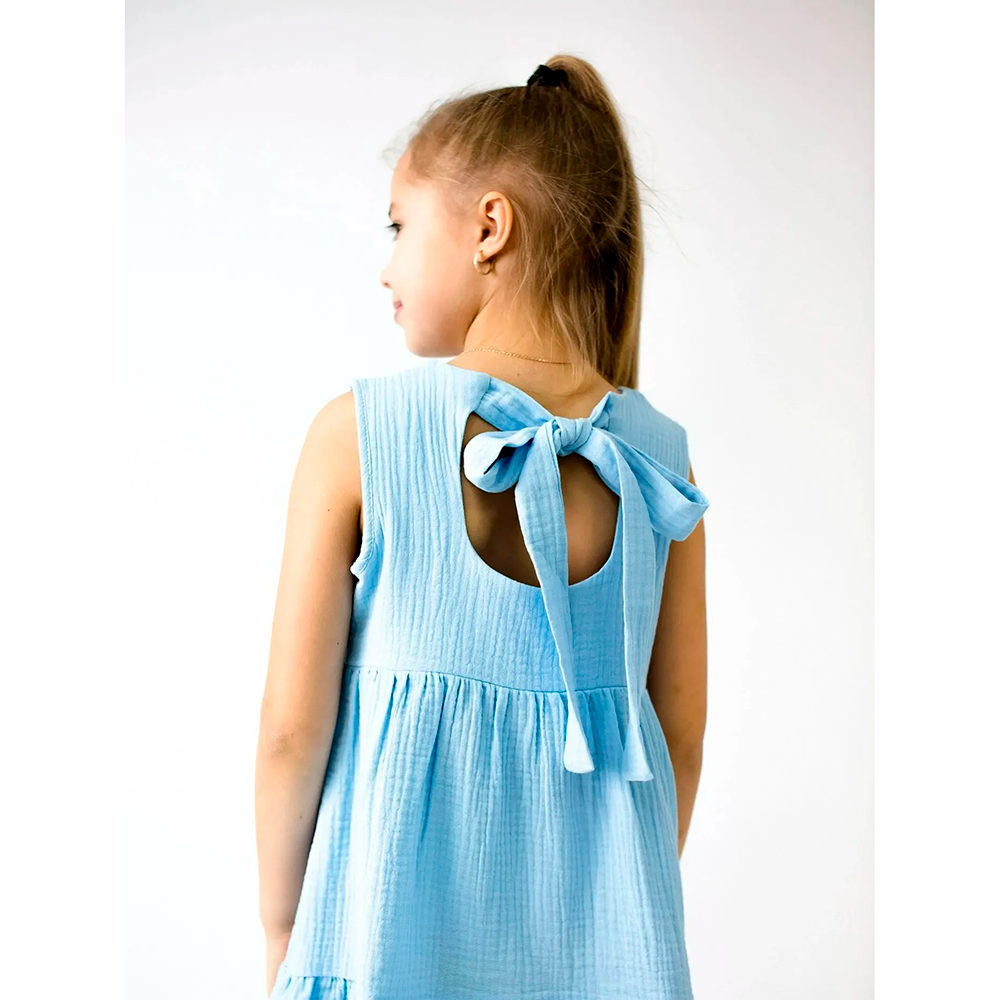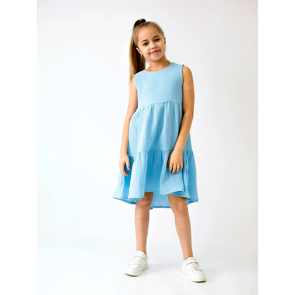 Данная модель имеет ярусный дизайн, который украшен изящными воланами, придающими платью особую легкость и игривость. С его свободным кроем и длиной миди — слегка выше колена с эффектным шлейфом, платье в сочетании короткого спереди и длинного сзади смотрится очень стильно и современно. Оно подходит на любую фигуру, подчеркивая красоту и индивидуальность вашей юной модницы. Одним из главных преимуществ этого муслинового платья является удобная посадка. Платье не мнется, что обеспечивает идеальный внешний вид в течение всего дня, а также не скатывается и не линяет даже после многократных стирок. Следует отметить, что катышки на платье не образуются, благодаря высококачественным природным волокнам, что делает изделие долговечным и практичным.