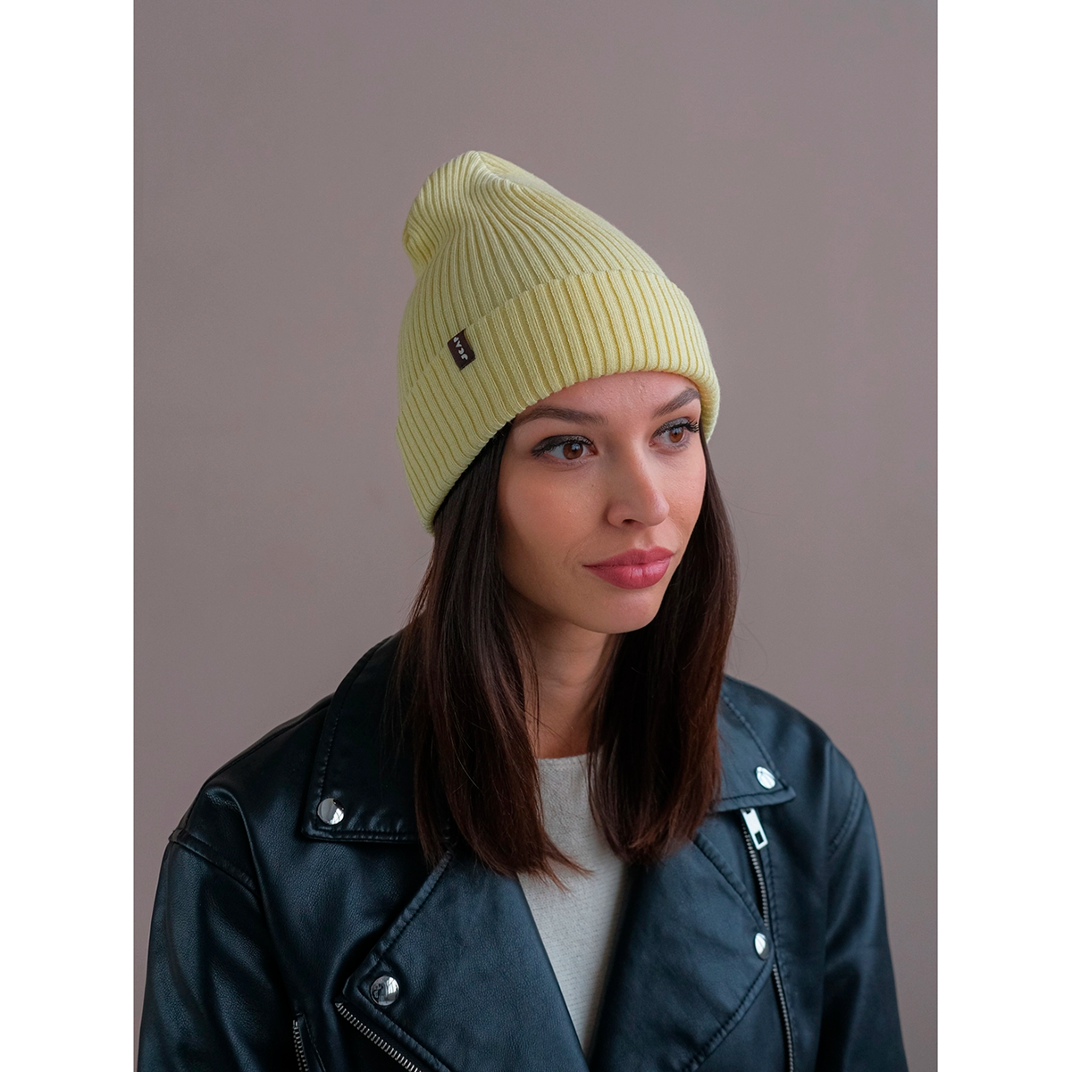 Шапка мула вязаная цвет Груша