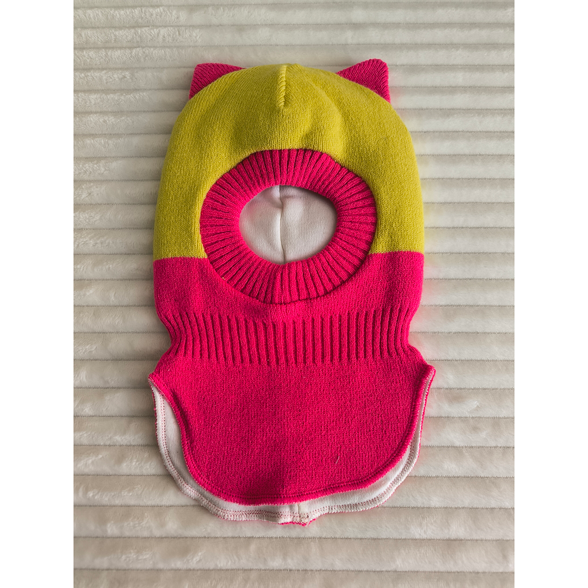Шапка шлем на девочку с ушками цвет желтый-фуксия